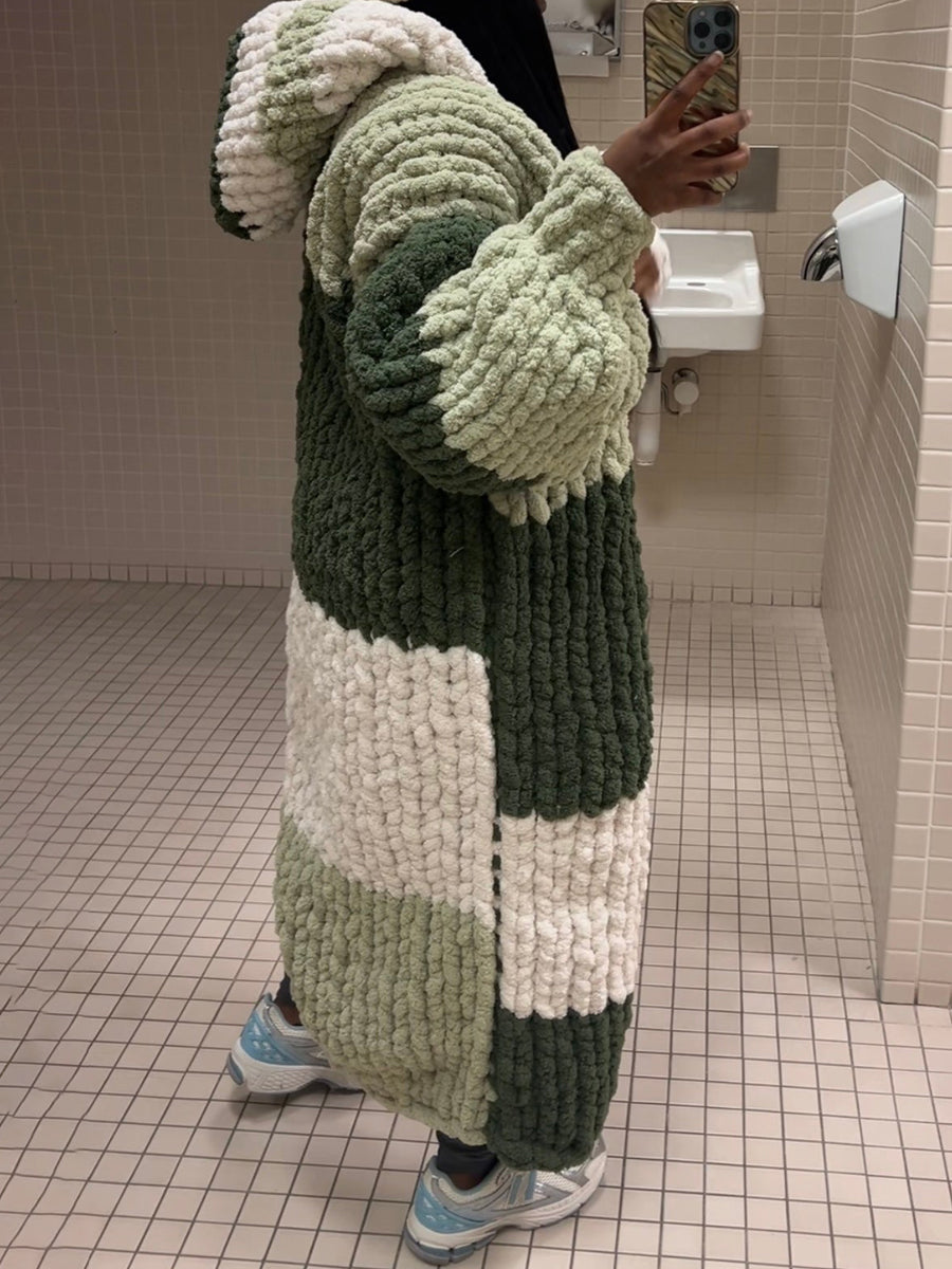Color Block Hooded Knit Cardigan