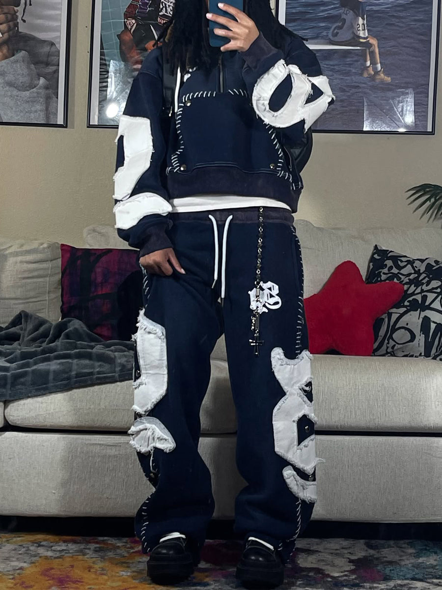 Hooded Embroidered Drawstring Waist Two Pieces Set