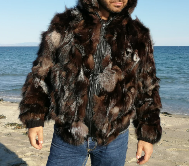 Men hooded fur coat