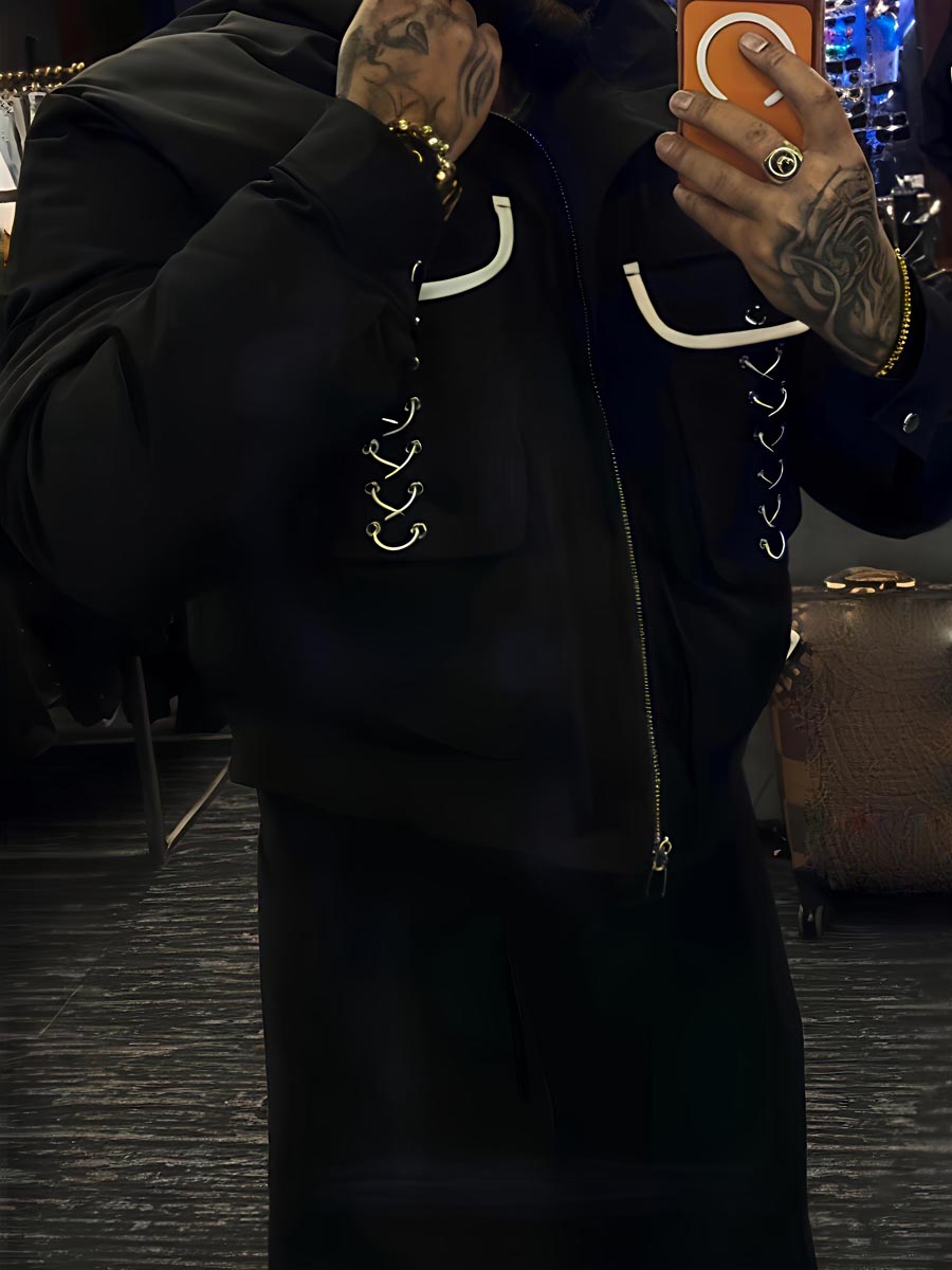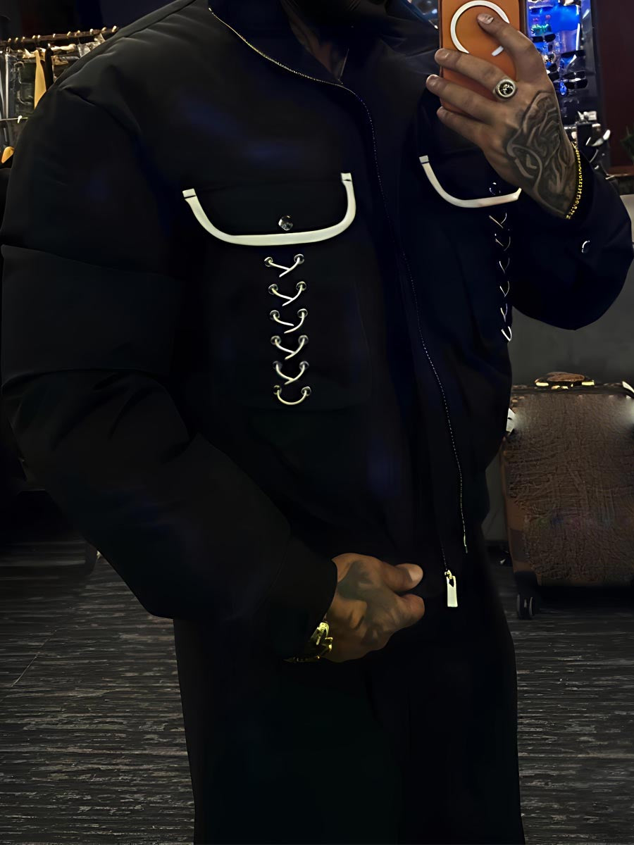 Men's Eyelet Detail Pockets Cotton-padded Jacket