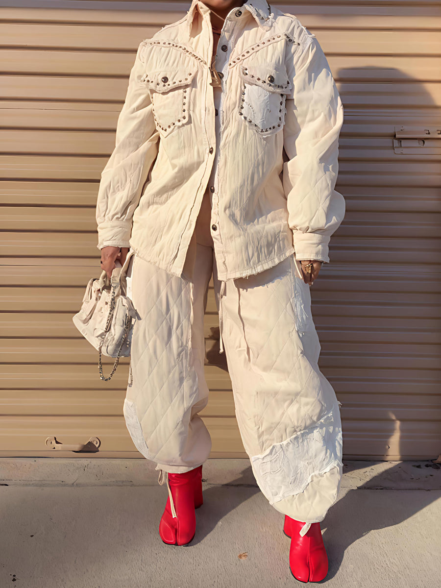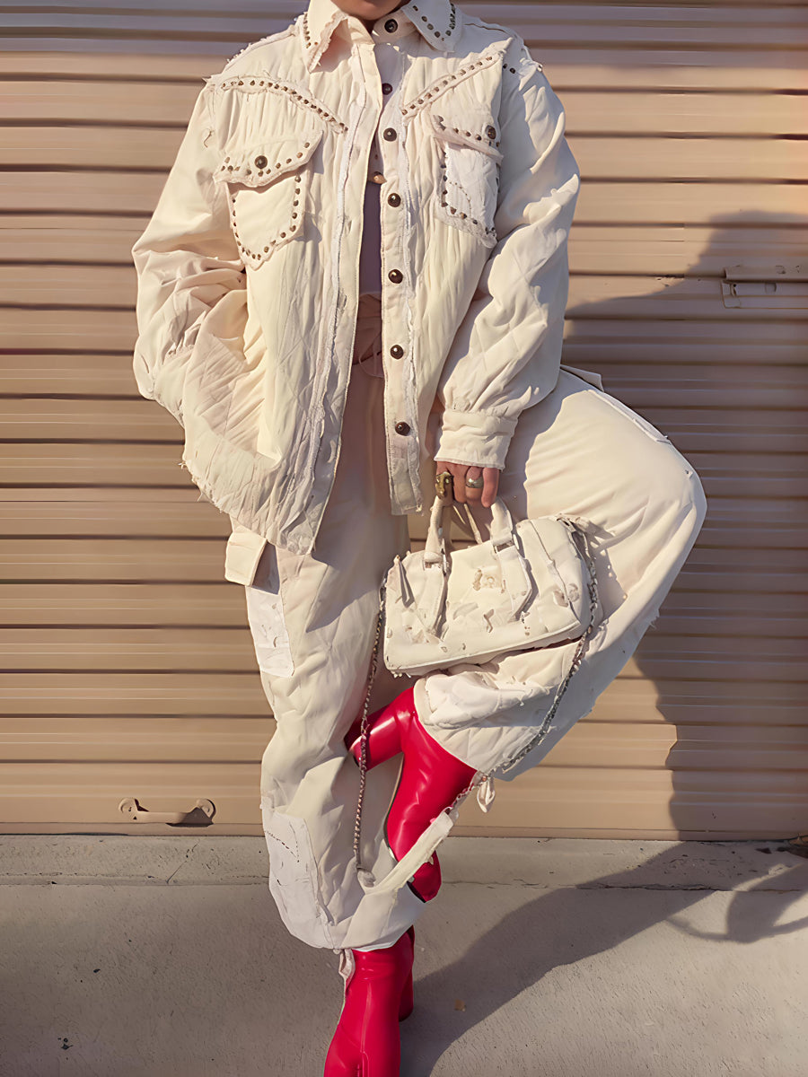 Rivet Trim Fashion Two Pieces Set
