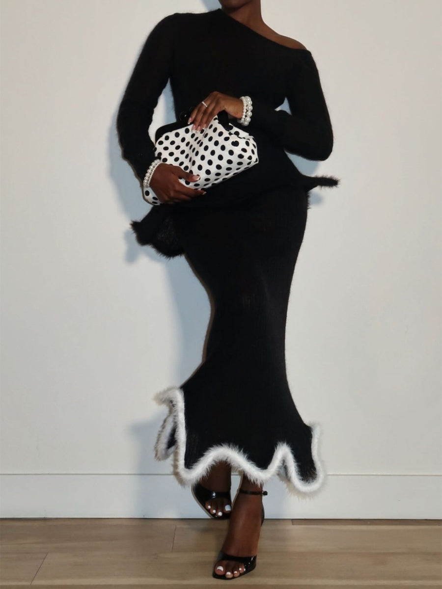 Sexy Irregular Hem Knit Sweater Two Pieces Dress